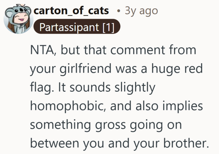 Apparently being a good brother can still make someone uncomfortable for reasons worth unpacking.