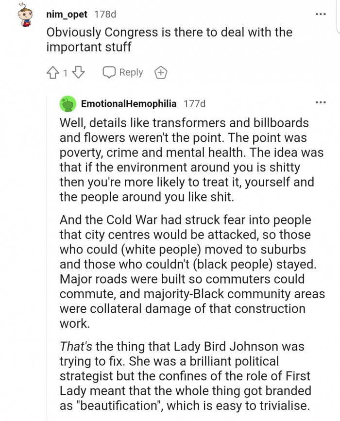 Just like members of the House of Representatives, many Americans who are familiar with this story acknowledge Lady Bird's immense contributions. In the words of one Redditor, "She was a brilliant political strategist."