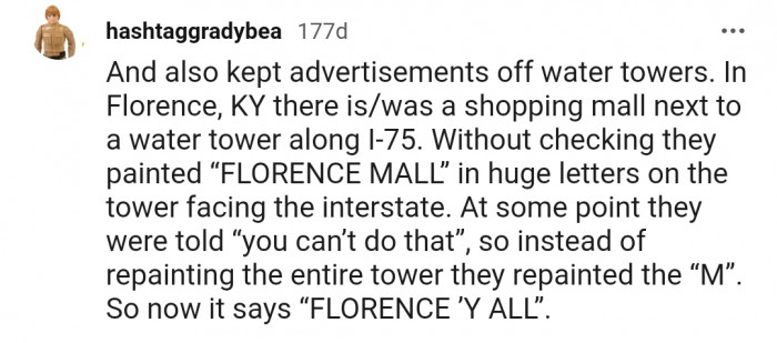 "And also kept advertisements off water towers"