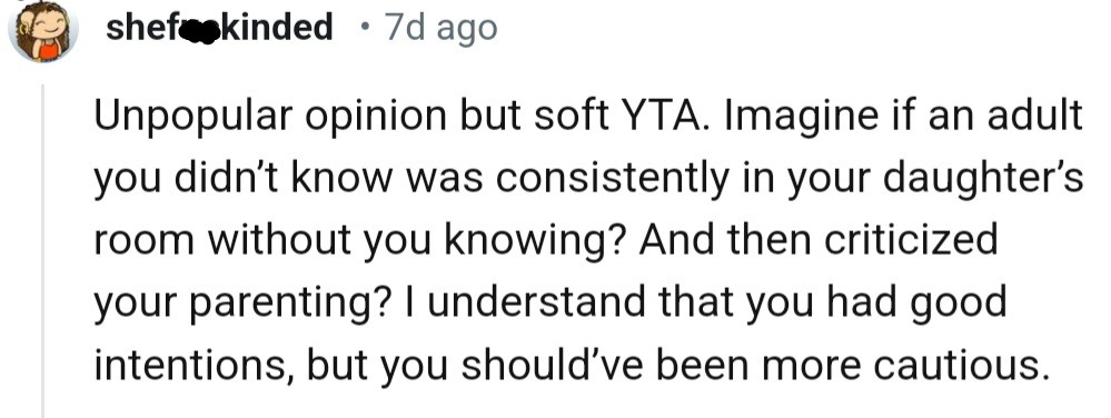 Feeling blindsided, OP relayed the encounter to her husband. He agreed that Mila’s mom was overreacting but suggested it might be best to avoid being in a random kid’s room, even with the best intentions.