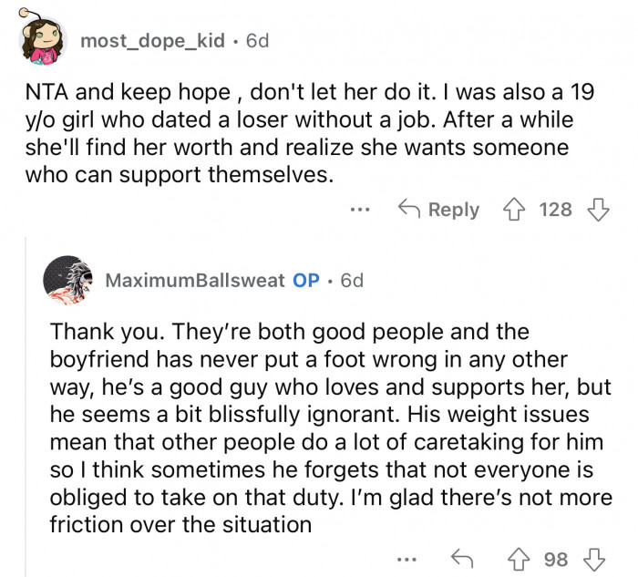 There's nothing worse than people who can't take a hint and continue to behave according to what makes them comfortable while ignoring everyone else. Dealing with such individuals is challenging since they won't act appropriately until you explicitly ask them. As noted by Dr. Alexandra Solomon, a relationship therapist, "Setting boundaries is essential for maintaining healthy relationships, but it can be uncomfortable, especially with those close to us." It's never pleasant to call someone out, especially if they are close to you or to someone you care about. They consistently choose the difficult path and always ensure to bring you along with them. Liz Weston, a financial columnist, emphasizes that "it's important to assess the impact of others' choices on your own financial and emotional well-being." It's best to avoid interacting with these people unless absolutely necessary. They have no shame, and you will inevitably lose when you confront them. A Redditor who goes by the username u/MaximumBallsweat made a post on the r/AmItheA**hole subreddit, where she explained how her daughter plans to move her boyfriend in with them. The user is against the idea since they can't afford the expenses of another person, and other accommodations must be made to make it possible. The Reddit community had a variety of reactions to u/MaximumBallsweat's post. Scroll down to check out the full Reddit post, and scroll a little further to read the comments from the original post.