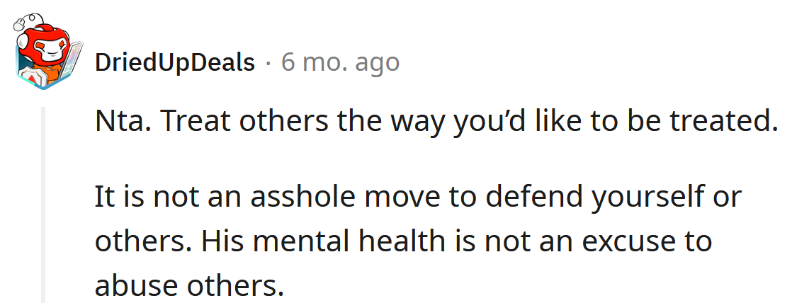 Of course, Mark's parents excuse his behavior because of his poor mental health. But the OP says she's sick of him ruining their family time together, so she's started challenging his behavior.