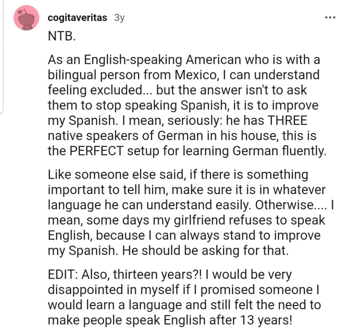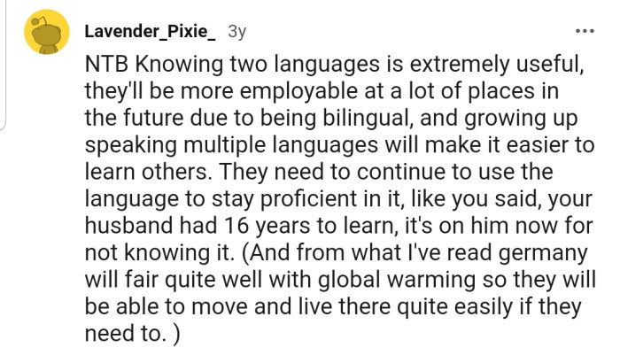 Reddit.comOP Encouraged Her Husband to Learn German Since It's Her First Language, but He Doesn't Really See the Need Since He Can Speak English and They Live in the U.S.