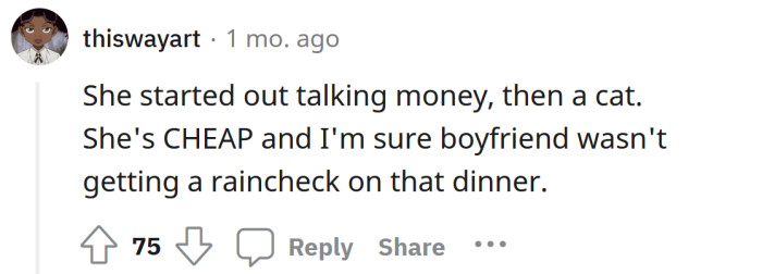 In this case, the Redditor may benefit from reflecting on her priorities and how they align with her commitments to her boyfriend and her cat.
