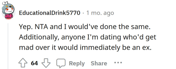 For Reddit user u/lastdregs, that decision was a no-brainer. She shared her story in the r/AITA (Am I The A**hole?) subreddit.