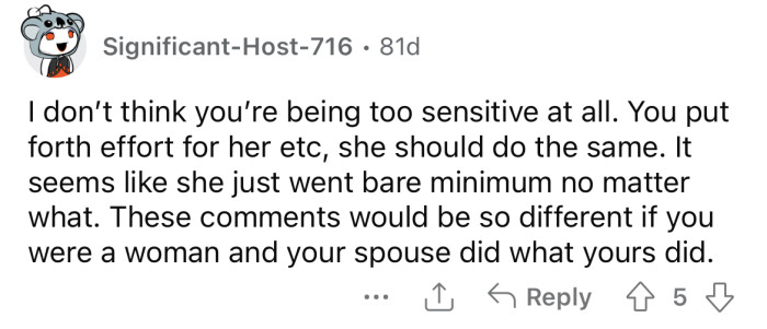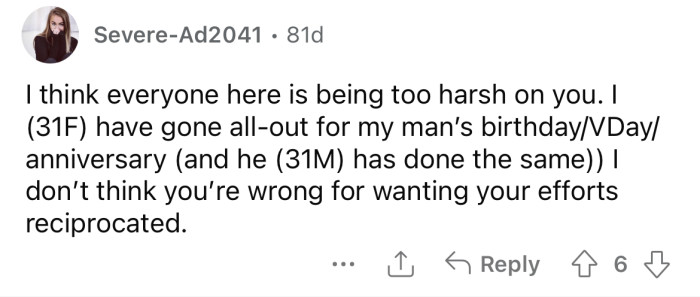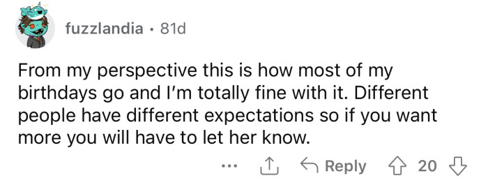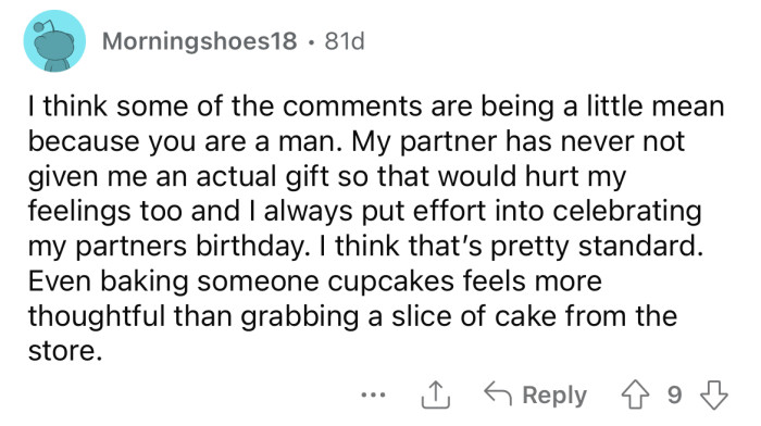 What's your take on this situation? Do you think the OP is being too sensitive here, or is it reasonable for him to have expected more from his wife on his birthday?