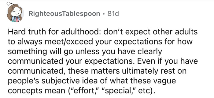 In an edit, he agreed with the Reddit community that he needed to communicate what he wanted better.