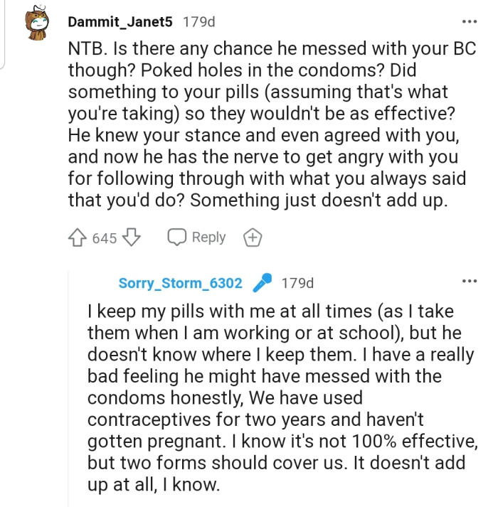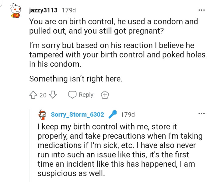 "I’m sorry, but based on his reaction, I believe he tampered with your birth control and poked holes in his condom."