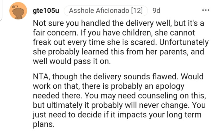 The commenters believe OP deserves the NTA title. According to them, OP must be able to rely on his partner since they plan on having a life together.