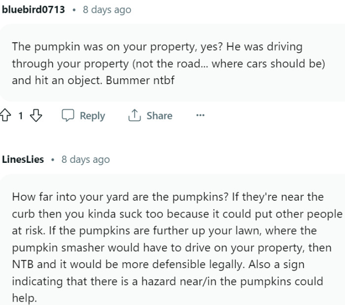 "His mom came to my house and told me that her 17-year-old son wrecked his car because of my pumpkin."