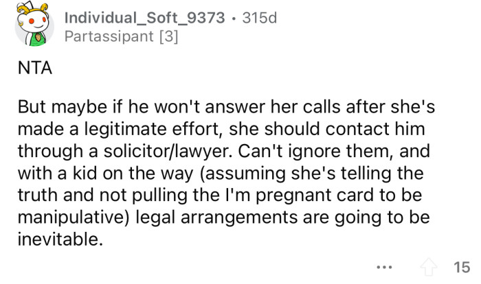 "She should contact him through a lawyer."