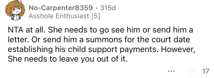 "She needs to go see him or send him a letter."