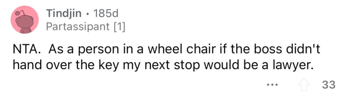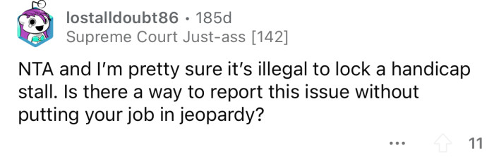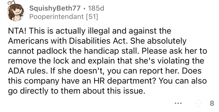 "I'm pretty sure it's illegal to lock a handicap stall."