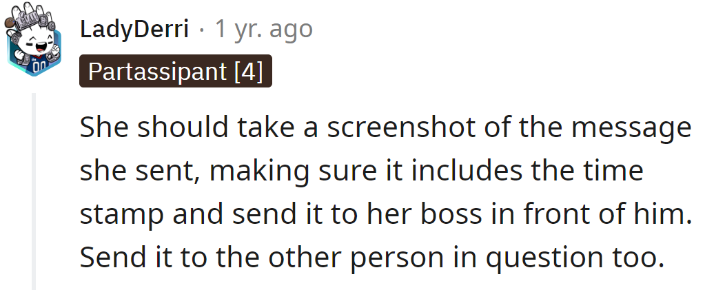 Redditors advised the OP to take a screenshot of the message and email it to her boss and HR. She shouldn't be fired because someone tried to violate her privacy.
