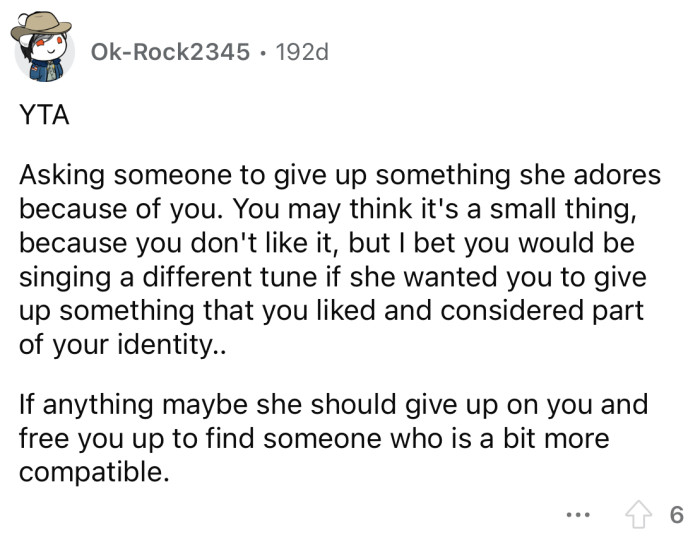 What's your take on this situation? Do you think the OP is out of line for expecting his girlfriend to give up an entire food group for him, or is it a reasonable request?