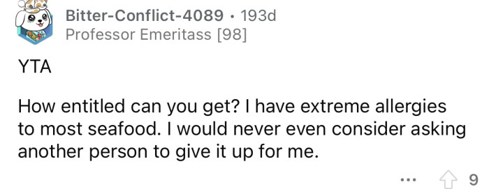 Redditor Labeled "Selfish" And "Entitled" For Expecting His Girlfriend To Give Up Eating Seafood Because He's Allergic