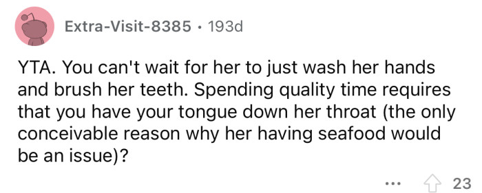 "You were mad you couldn't touch her one night because she ate fish that night? That's nuts."