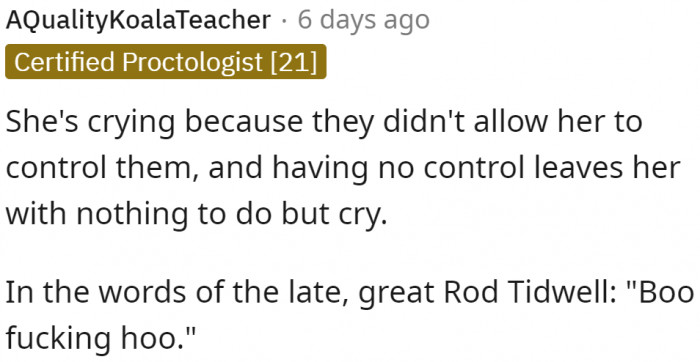 "Boo f**king hoo," says the mom.