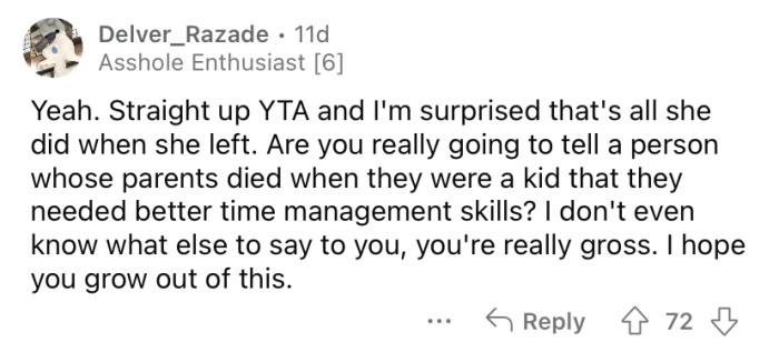 "You are the a**hole for even comparing them."