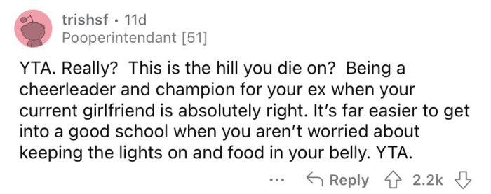 "Your current girlfriend is absolutely right."