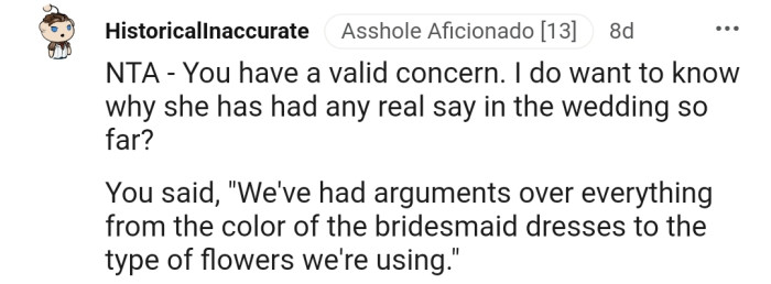 We found a story on the AITA subreddit highlighting the issues that may arise from making a wedding decision and standing by it.