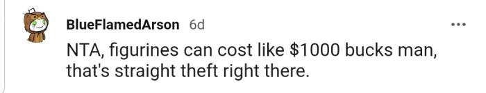 "Figurines can cost like $1000 bucks, man, that's straight theft right there."