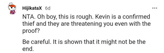"Kevin is a confirmed thief, and they are threatening you even with the proof?"