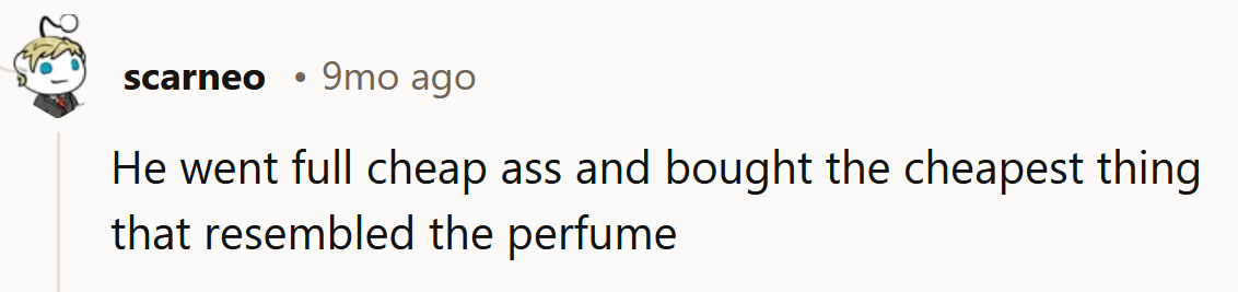 The Redditor asked him why he told her to waste her money when she could have easily spent it on the perfume for herself.