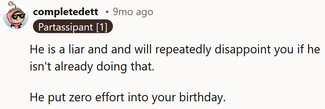 Redditor Questions If She's Wrong For Calling Her Boyfriend Liar Over Birthday Gift