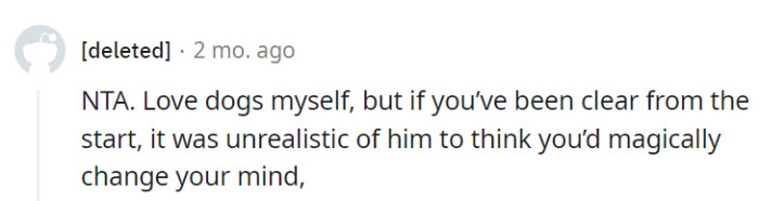 Studies in relationship psychology suggest that differing attitudes toward pets can create significant friction, particularly if one partner feels their needs are marginalized.