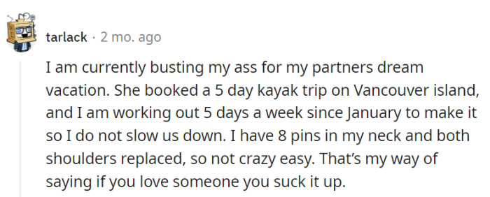 "If you love someone, you suck it up."