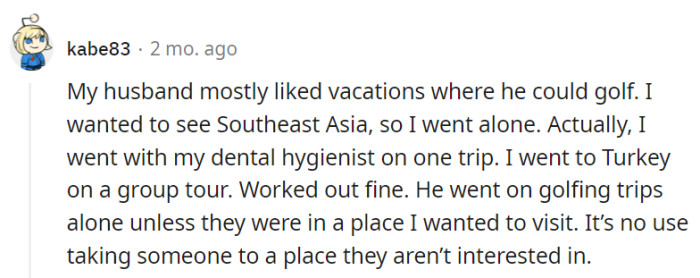 A solo trip seems more ideal at this point for OP.