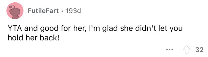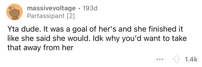 "You really expected her to just abandon her dream now that it was in front of her?"