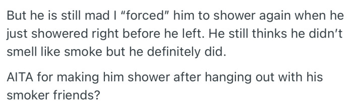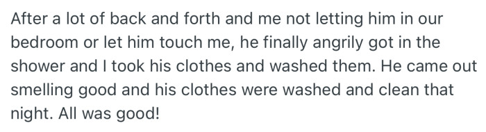 Now he’s stuck wondering if refusing a shower turned him into the exact problem she was trying to avoid.