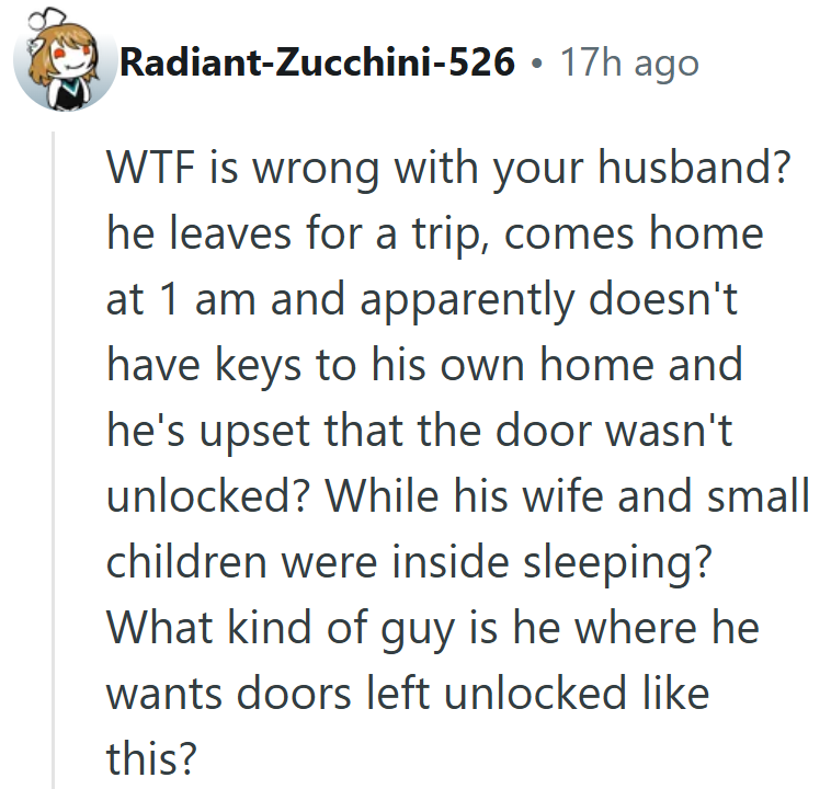 That's the scene one Reddit user painted after accidentally locking her husband out when he returned from a weekend trip with friends, and now, their marriage has become a flashpoint for thousands of online commenters weighing in on what should have been a minor inconvenience.
