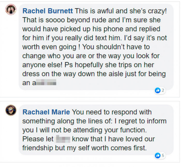 I know... I was that girl. I literally cringe at how I was as a bride-to-be and the things I worried about—but I was nowhere near as bad as what you're about to see. Below is a text exchange between a bride-to-be and a guest (a female friend of the groom) whom she asks to completely change her appearance before attending their wedding.