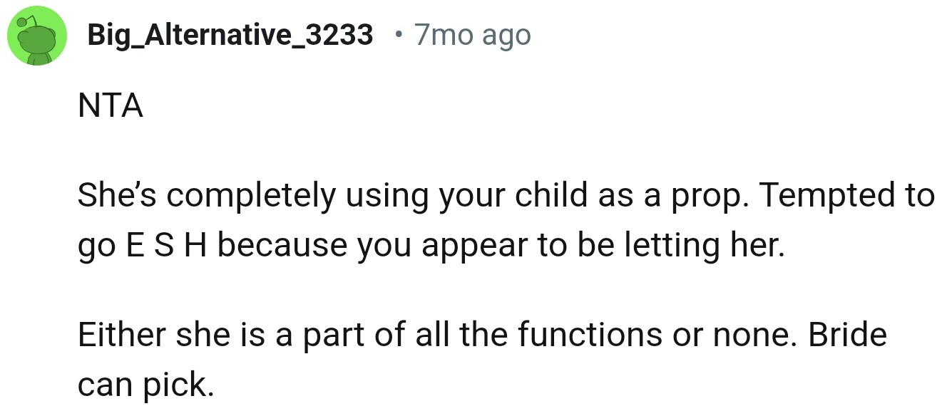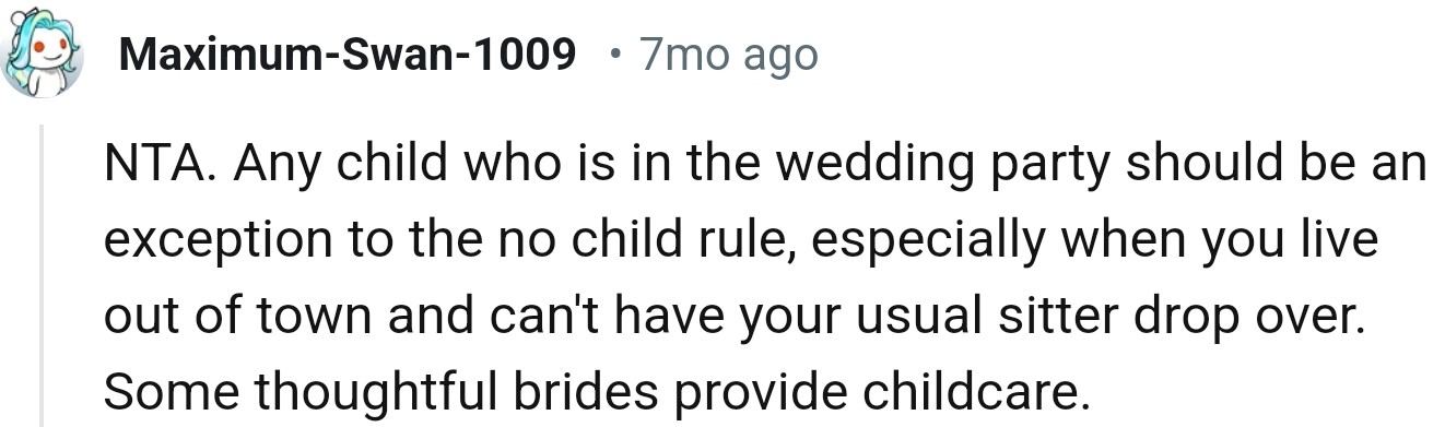 Perhaps assuring the bride that they’d watch their child like a hawk and make sure she doesn’t disrupt the dinner might ease her concerns. If that doesn’t work, the community was all for OP sticking to his decision.