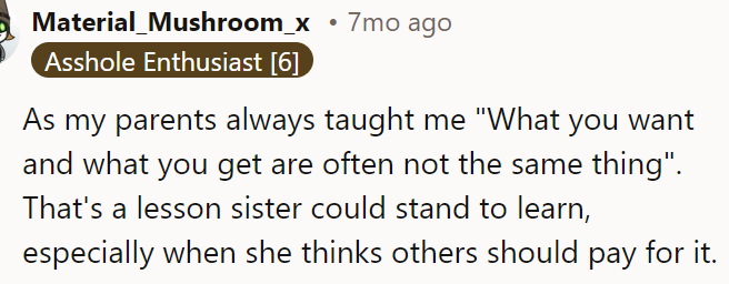 This scenario illustrates the tension that can arise from family expectations surrounding financial responsibilities. The sister's feelings of being pressured reflect a common struggle in family dynamics, where obligations can overshadow individual desires. It's important for families to engage in open discussions about expectations and responsibilities to promote understanding and cooperation.