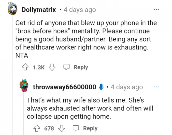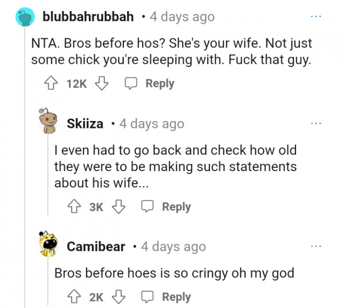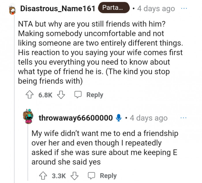 "His reaction to you saying your wife comes first tells you everything you need to know about what type of friend he is."
