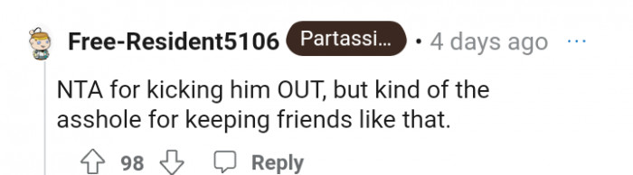 Only time will tell if this friendship can be mended. What do you think? Should the author apologize to his friend? Or was he right to ask his friend to leave?
