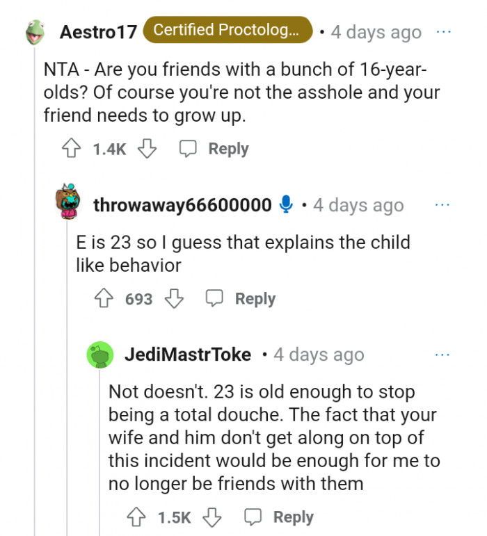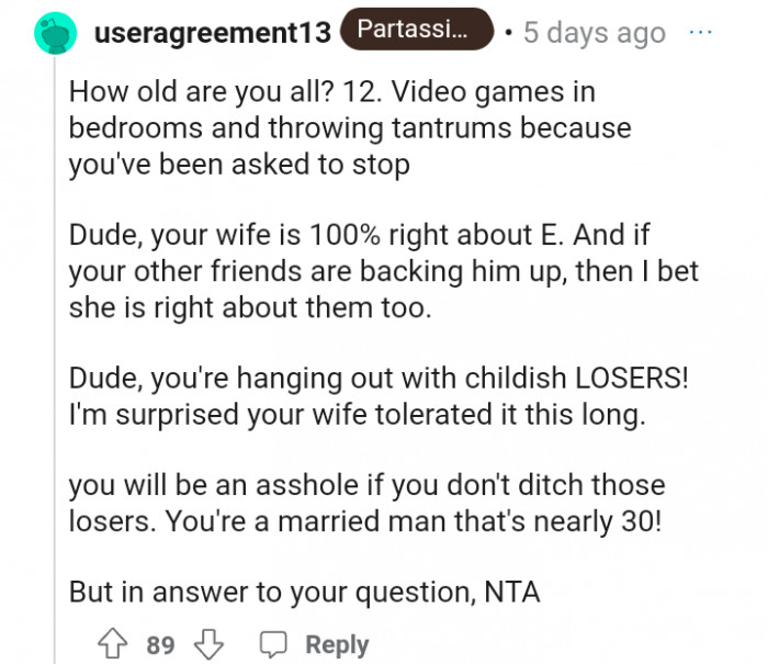 "Dude, you're hanging out with childish losers!"