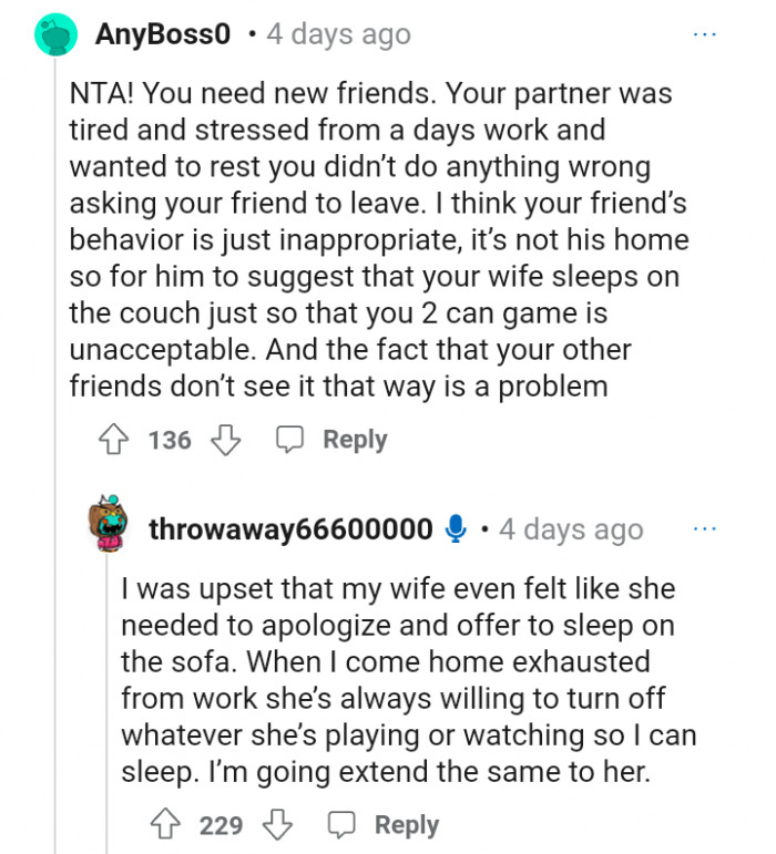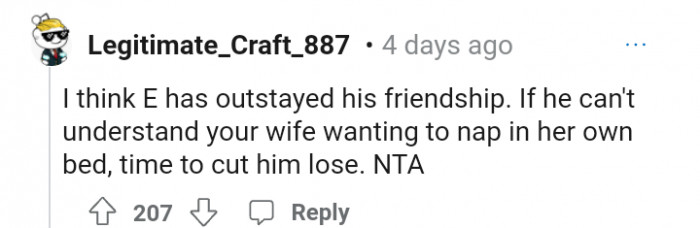 "AITA for kicking my friend out of my bedroom so my wife could take a nap?"