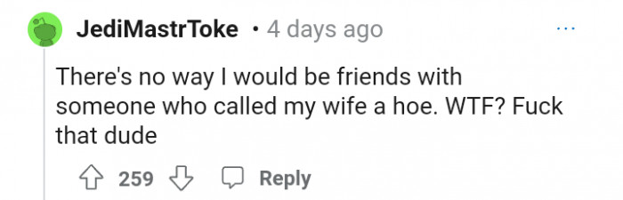"There's no way I would be friends with someone who called my wife a hoe."