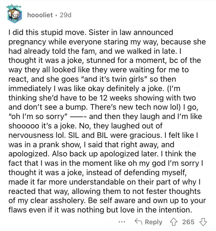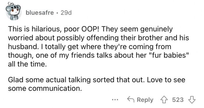 Either way, it's clear that the OOP felt terrible about his comment. He went out of his way to clear the air with his brother and BIL.
