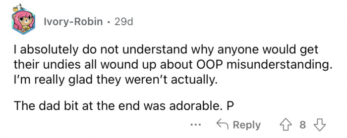 Of course, the Reddit community found this entire story utterly endearing. Keep scrolling to see how they reacted.