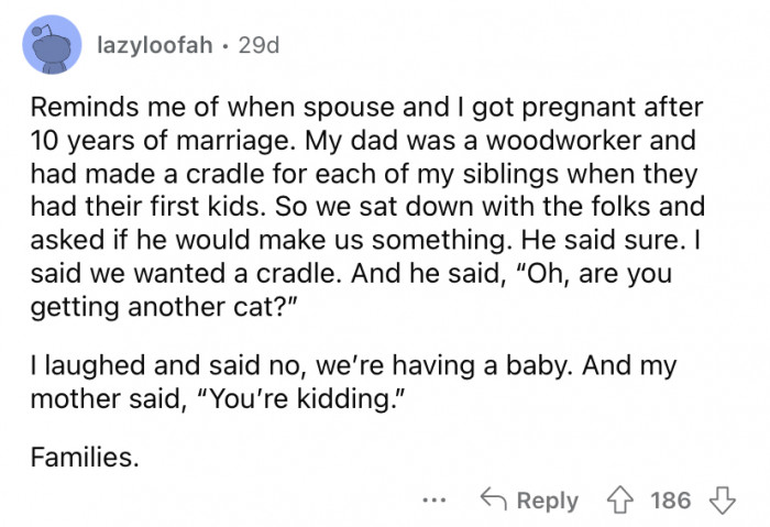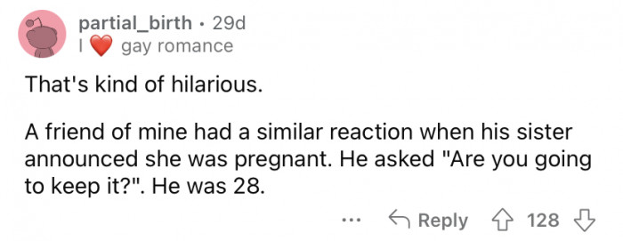 So, when OOP's brother called to say, "Congrats, you're an uncle, you have a little nephew," the Redditor was taken by surprise. He answered, "Oh nice, did you get a dog or a cat?"