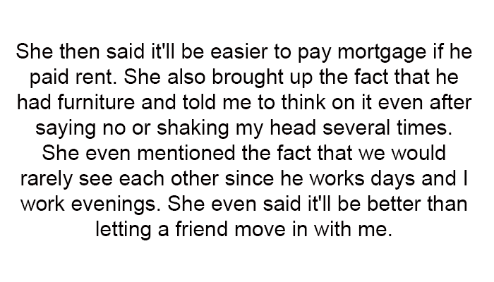 While her mother argues for the financial benefits and minimal interaction due to differing work schedules, the emotional and mental toll of living with her brother could outweigh these advantages. This raises important questions about setting boundaries and prioritizing personal health over familial pressure.