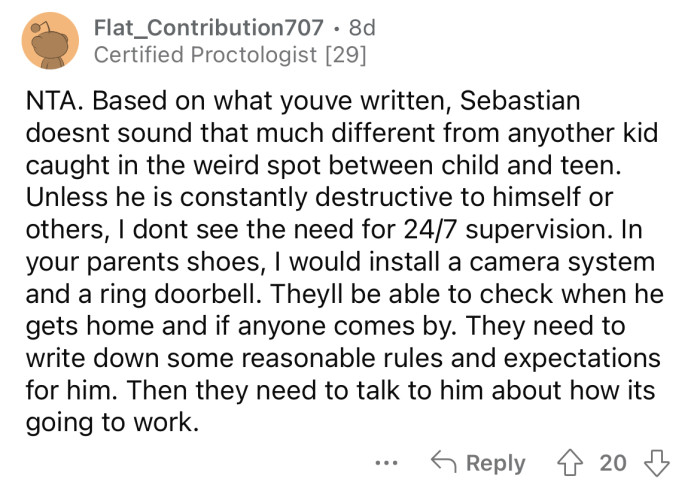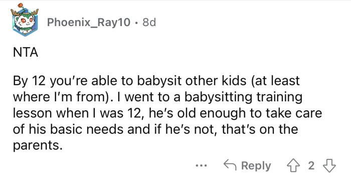 The OP told her parents that it's on them if Sebastian needs to be babysat at his age and that it's not her problem. However, they told the OP that there was no excuse for her being so rude.