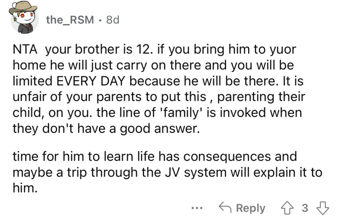 Reddit//Box_Quick_32She explained that her 12-year-old brother is going through a phase of particularly bad behavior.