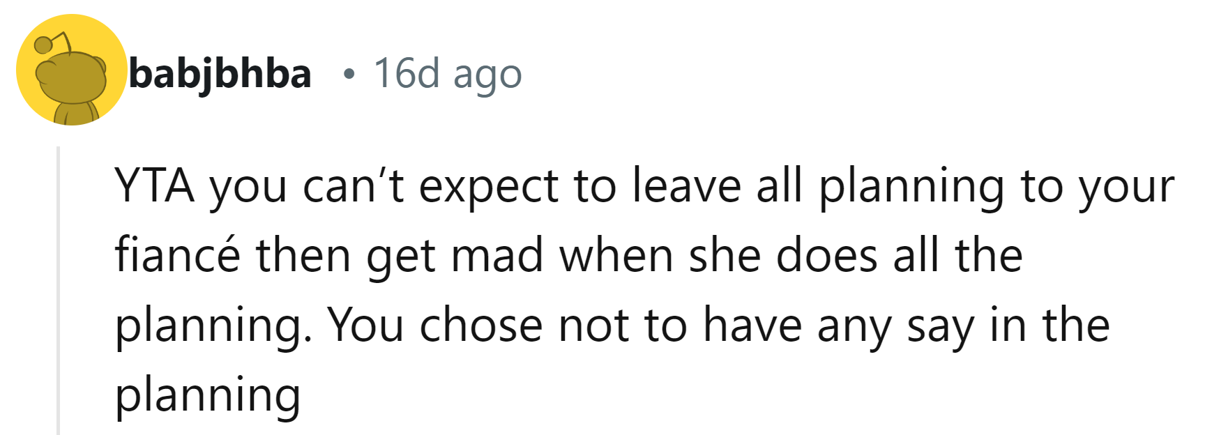 Reddit/Haunting-Raisin988He explained that he and his fiancée have recently begun planning their wedding day.